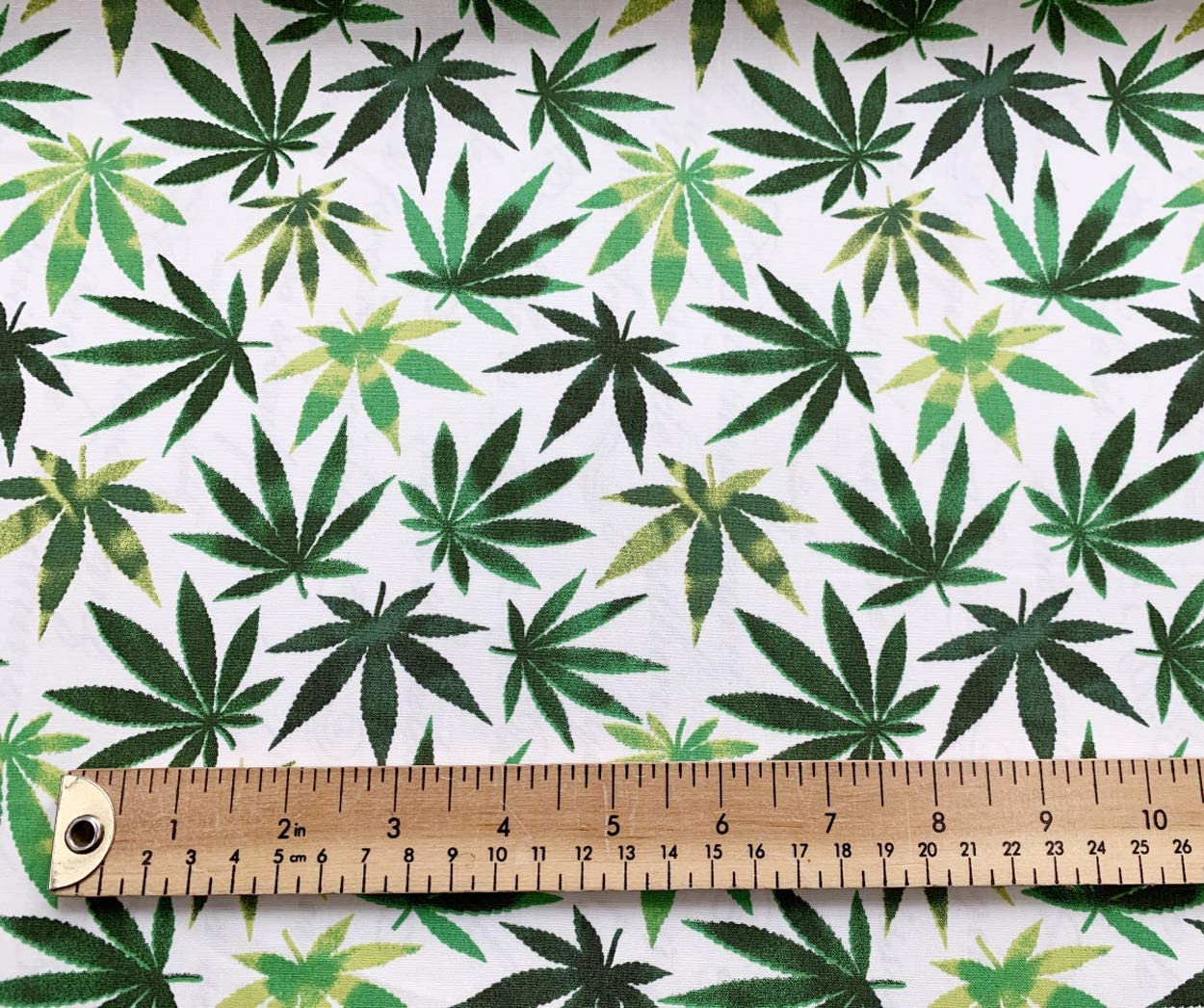 1 Metre 100 % Cotton Poplin Green Weed Gangja Mariguana Width: 110cm (45 inches) stock location b3