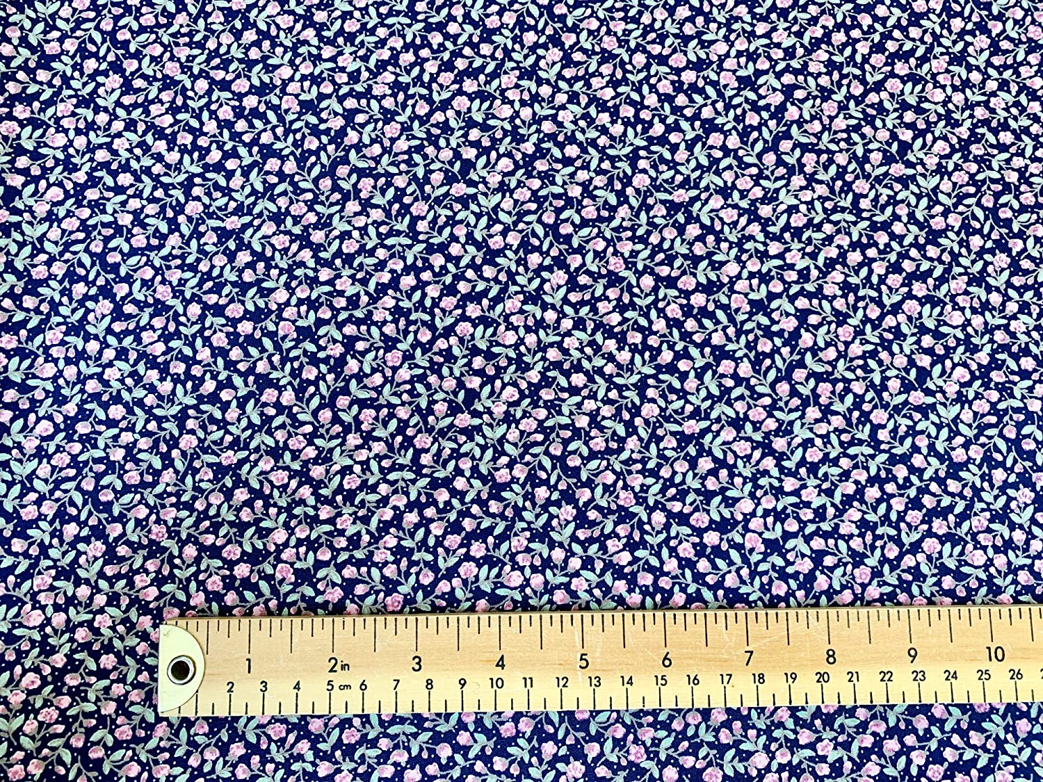 1 Metre 100 % Cotton Poplin Navy & Pink Small Floral Width: 110cm (45 inches)