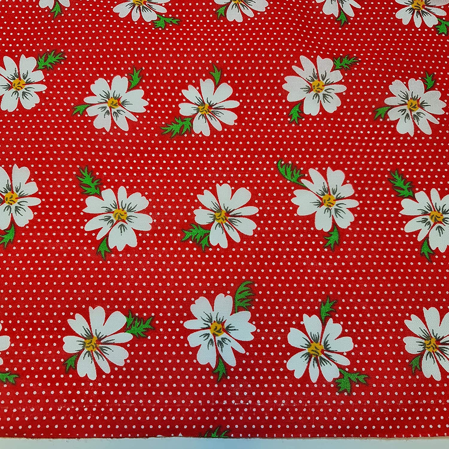 1 Metre Daisy Polycotton on Polkadot Red Background Fabric 112cm Width